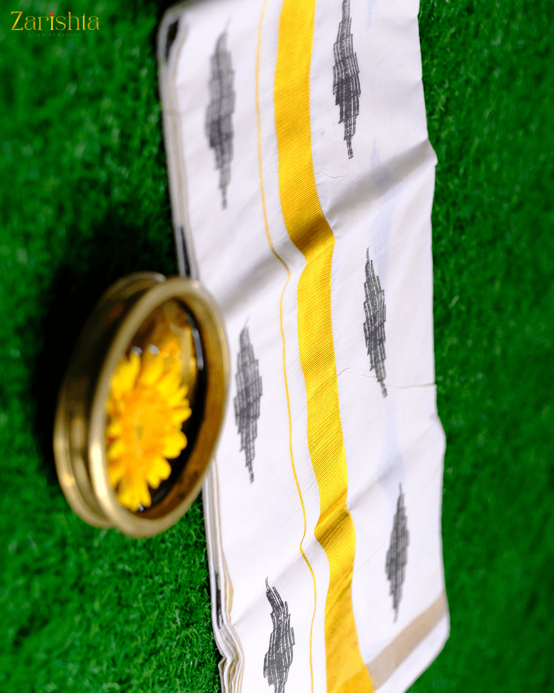 • Embroidered Kerala kasav saree